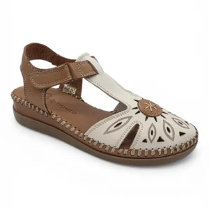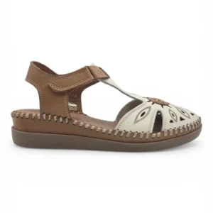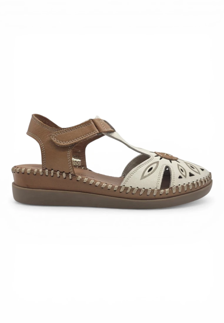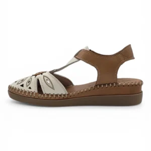 Sandalia punta cerrada Calzados Reno mod. 47156 de Piel en taupe