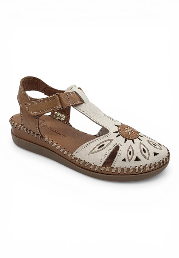 Cangrejera talon abierto 48 Horas mod. 614102 de Piel en beig-tostado