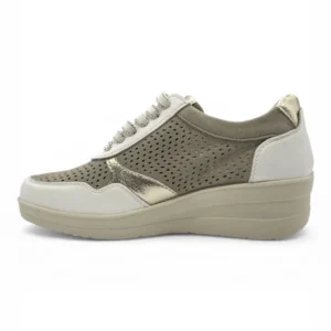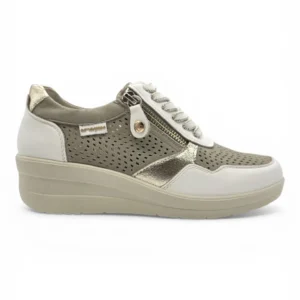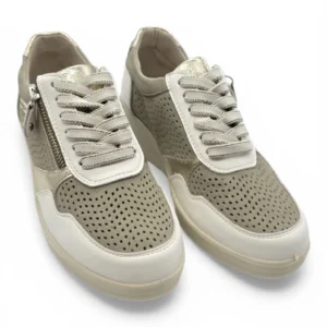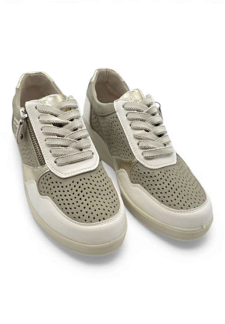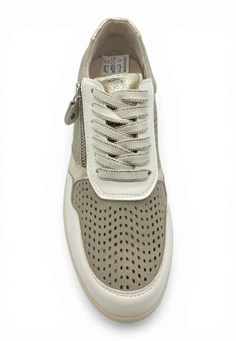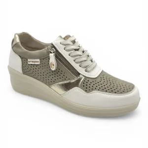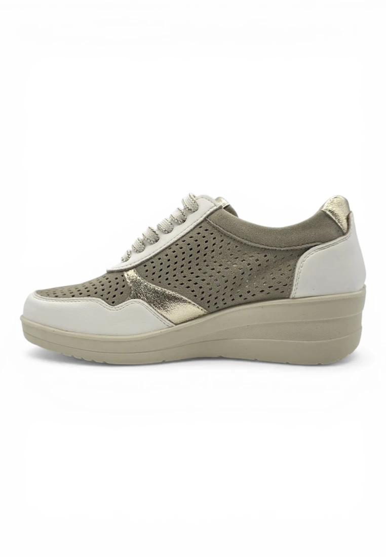 Casual piel cuña combi picado Calzados Reno mod. AMD30251 de Piel en blanco-beig