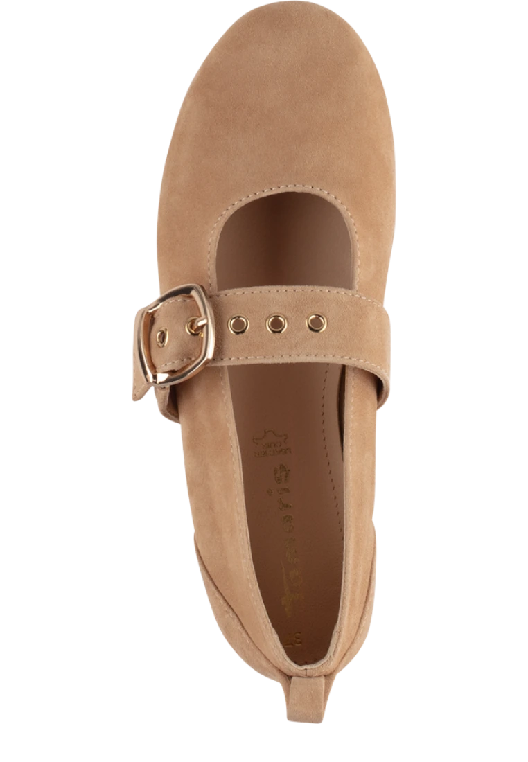 Mercedita hebilla dorada Calzados Reno mod. 22101 de Ante en beig