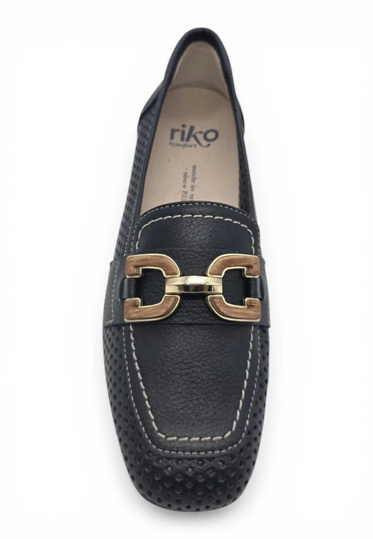 Mocasin adorno dorado Calzados Reno mod. 6022 de Piel en azul marino