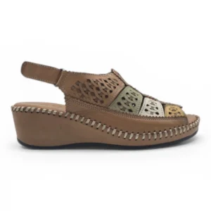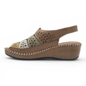 Sandalia punta cerrada Calzados Reno mod. 47156 de Piel en taupe