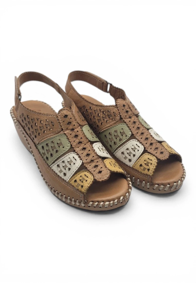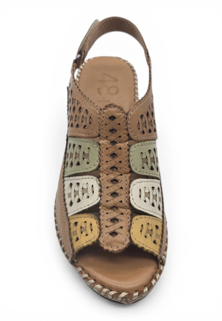Sandalia cangrejera cuña 48 Horas mod. 614004 de Piel en cuero