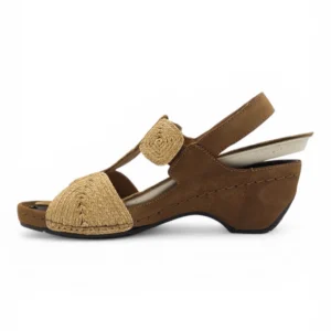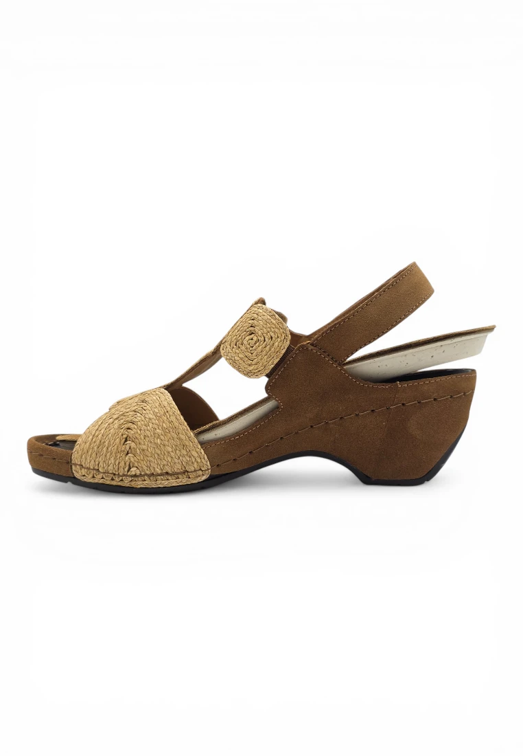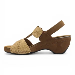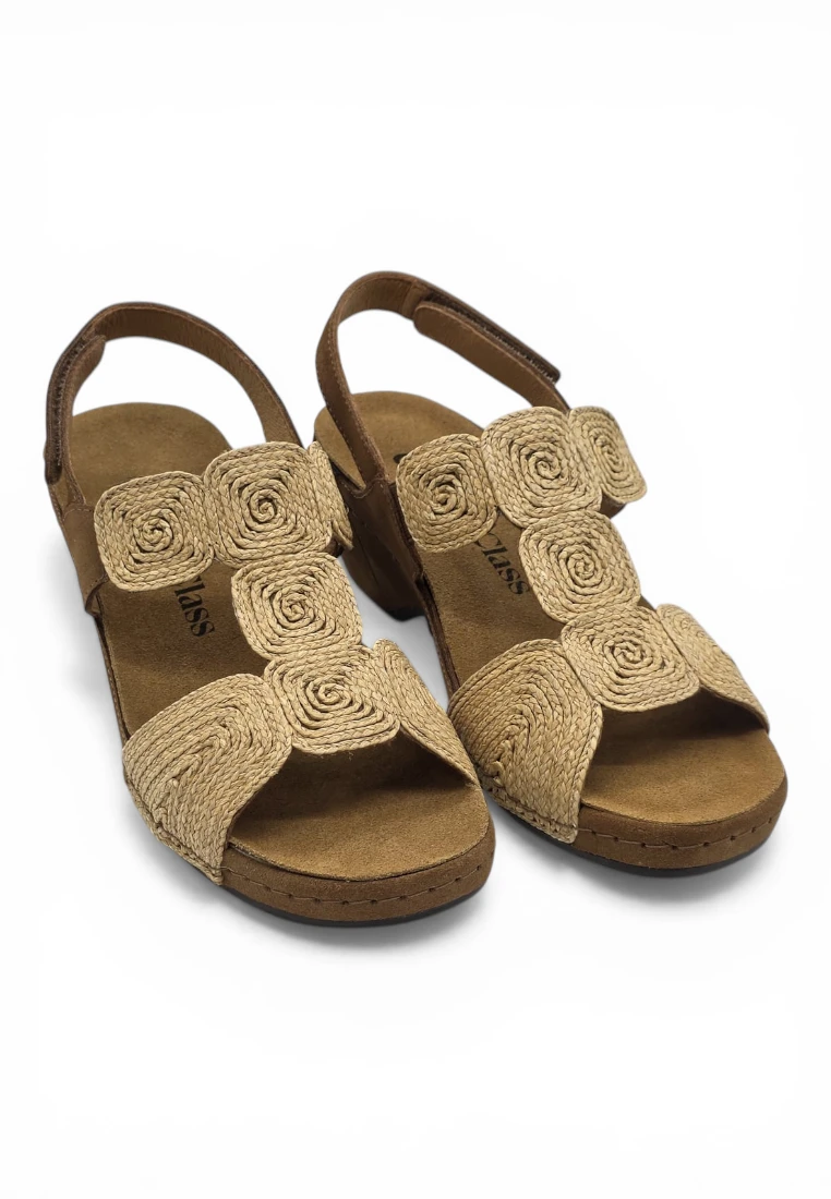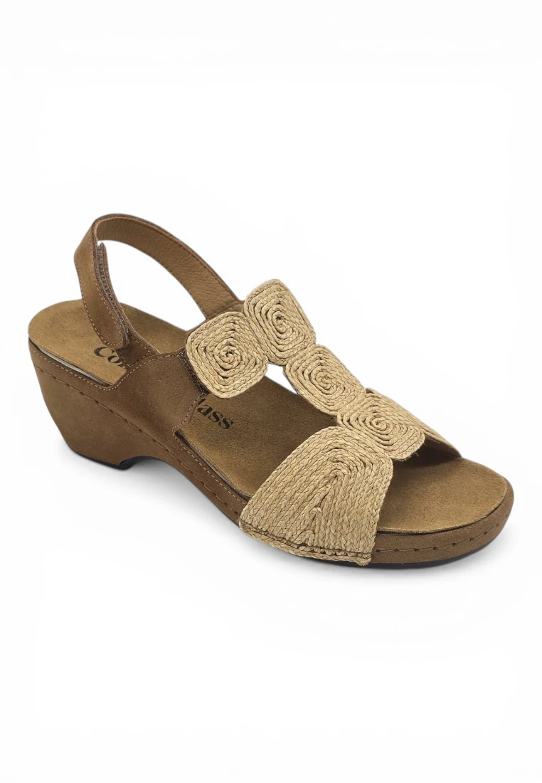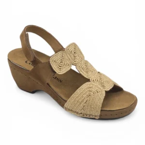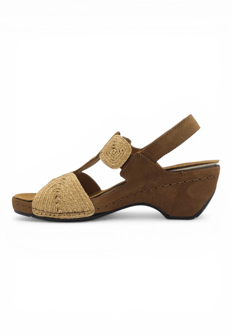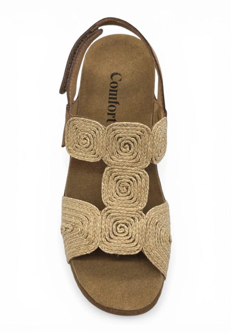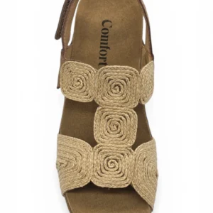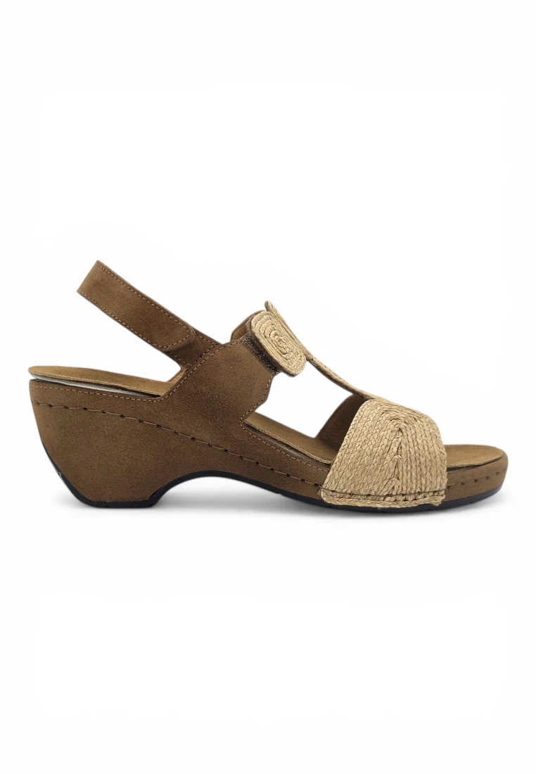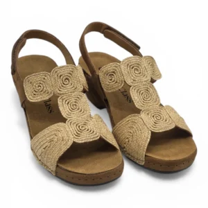 Sandalia cuña rafia Calzados Reno mod. 864 de Piel en cuero-beig