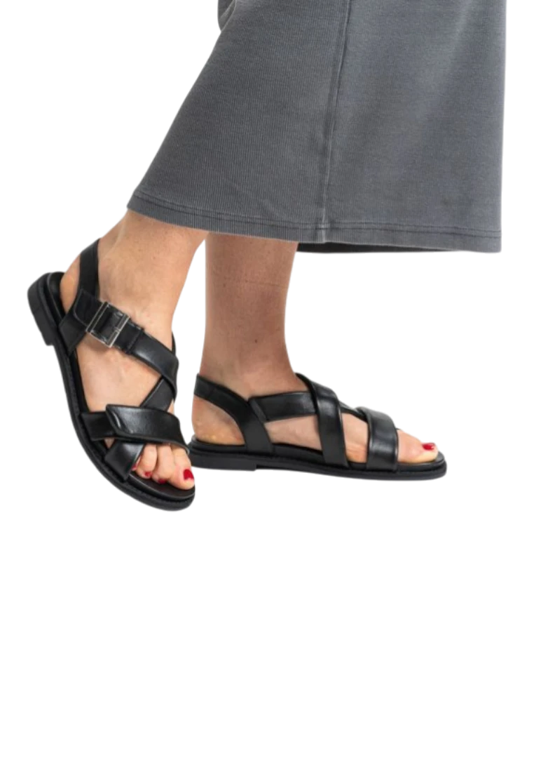 Sandalia plana Calzados Reno mod. 1253606 de Piel en negro