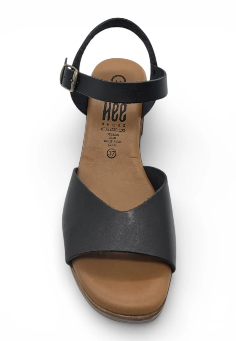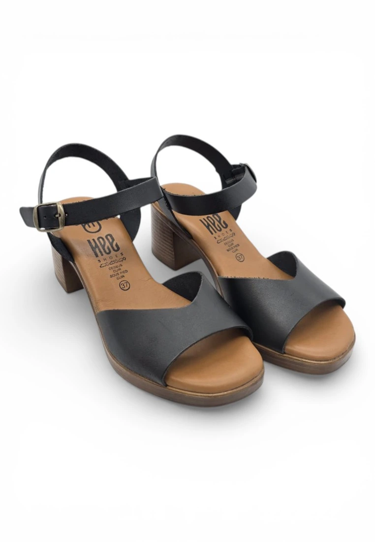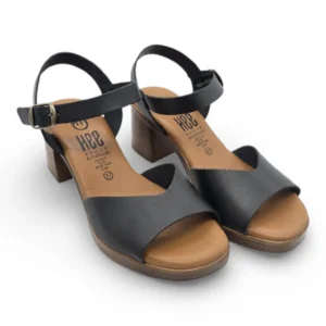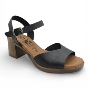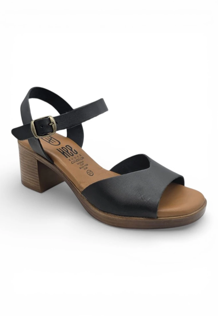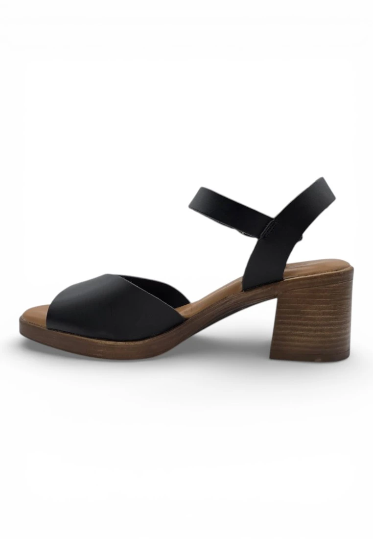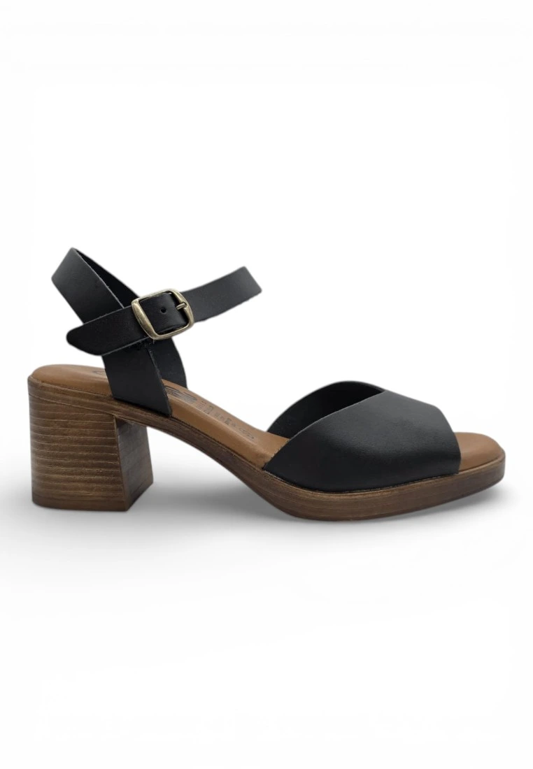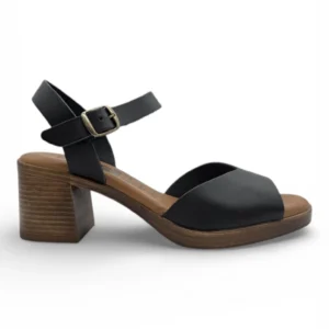 Sandalia tacon cuadrado Calzados Reno mod. 26550 de Piel en negro