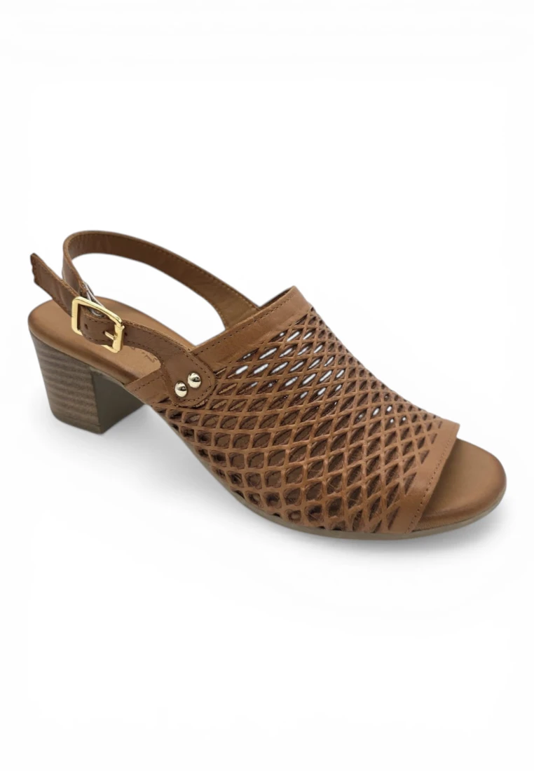 Sandalias tacon cuadrado Calzados Reno mod. ELDA de Piel en cuero