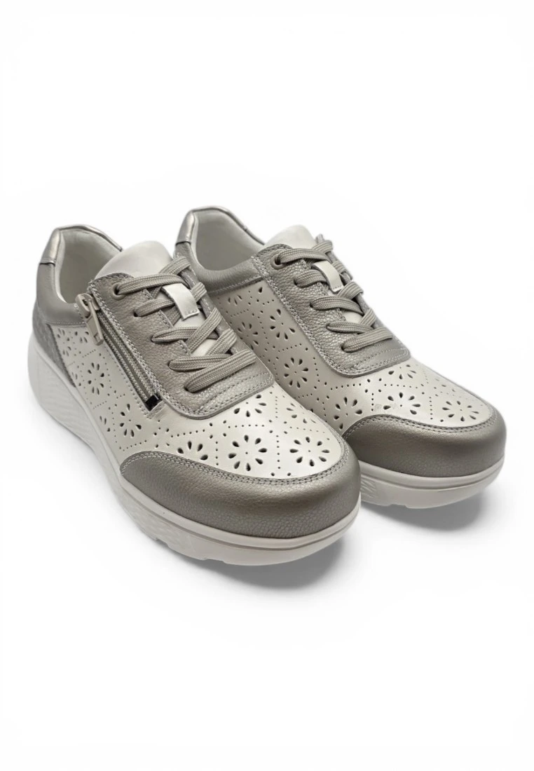 Zapato deportivo ultra ligero Calzados Reno mod. S-2726 de Piel en platino