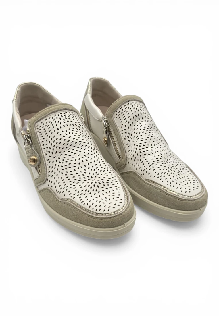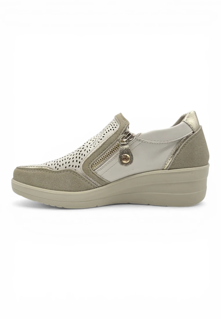 Zapato piel cremallera lateral Calzados Reno mod. AMD30253 de Piel en blanco-beig